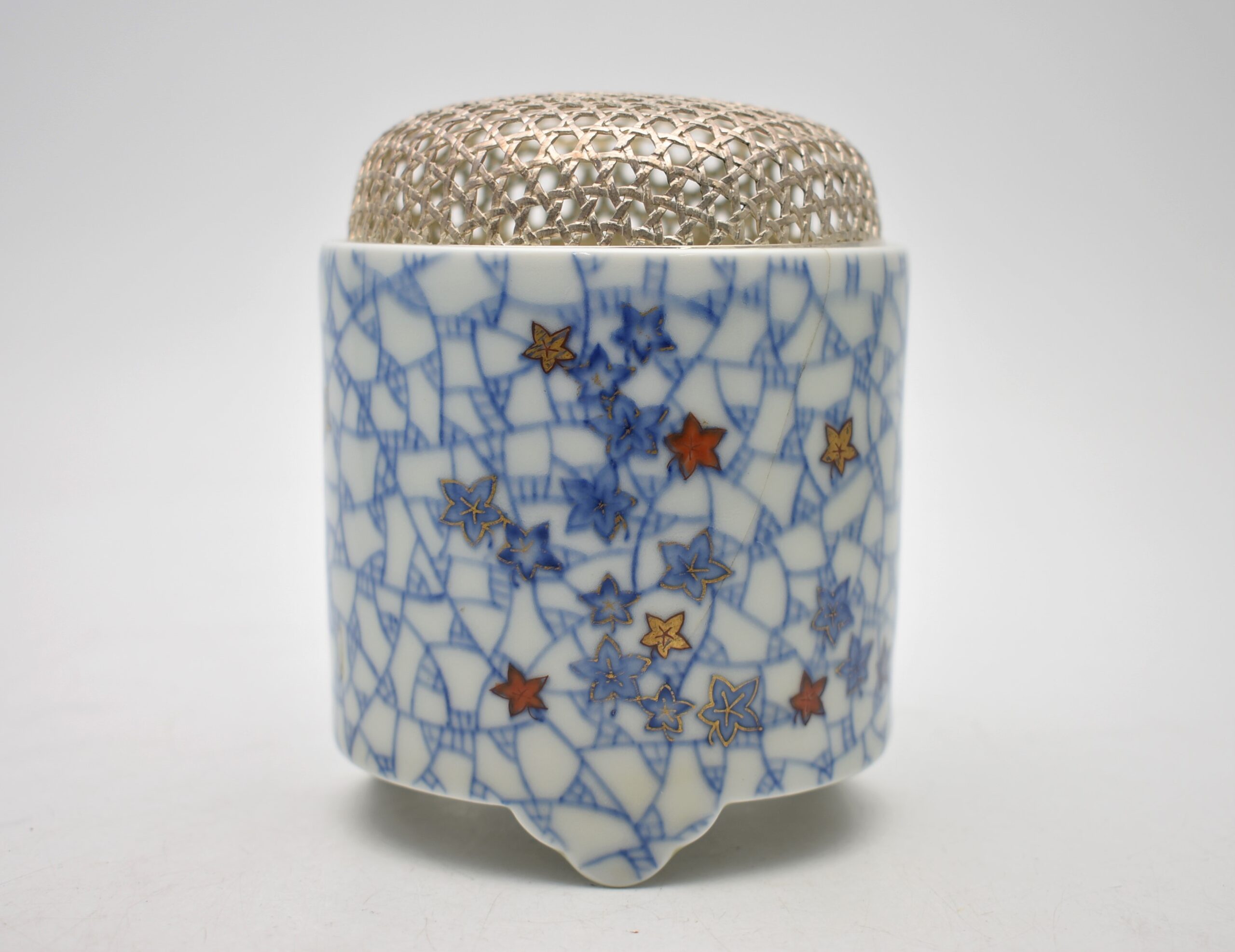 古美術買取 茶道具買取【石川県七尾市】のお客様より◆有田焼名工 十二代酒井田柿右衛門造 紅葉模様染付銀火屋香炉◆をお買取り。