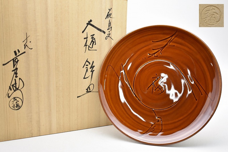 古美術買取 茶道具買取【石川県金沢市】のお客様より◆大樋焼 十代 大樋長左衛門 大樋年朗 花鳥紋 飾皿◆をお買取り。