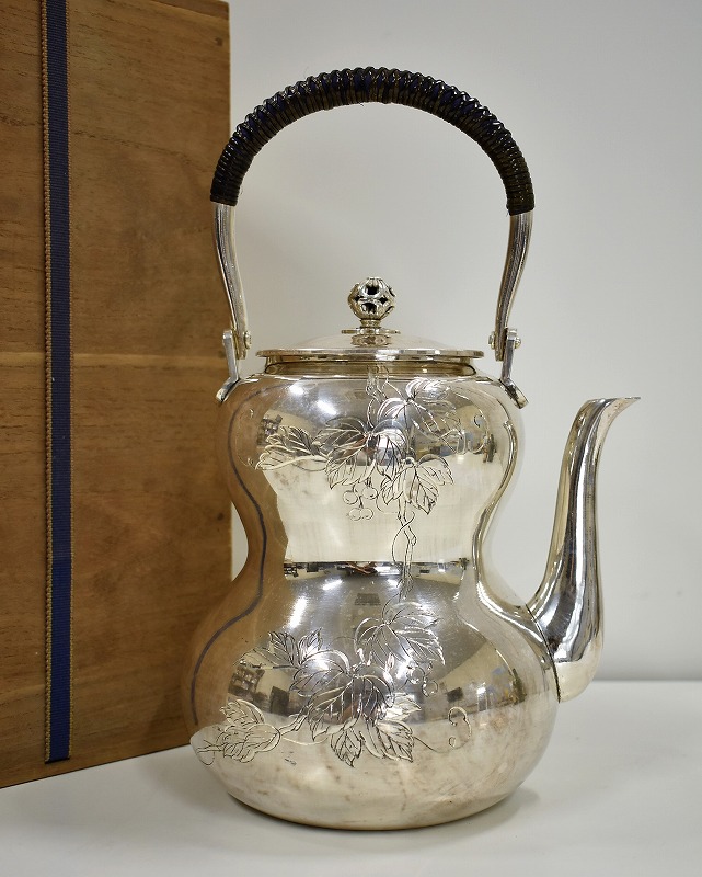 古美術買取 茶道具買取 銀製品買取【富山県小矢部市】のお客様より◆純銀製 花紋片桐彫瓢箪形銀瓶◆をお買取り。