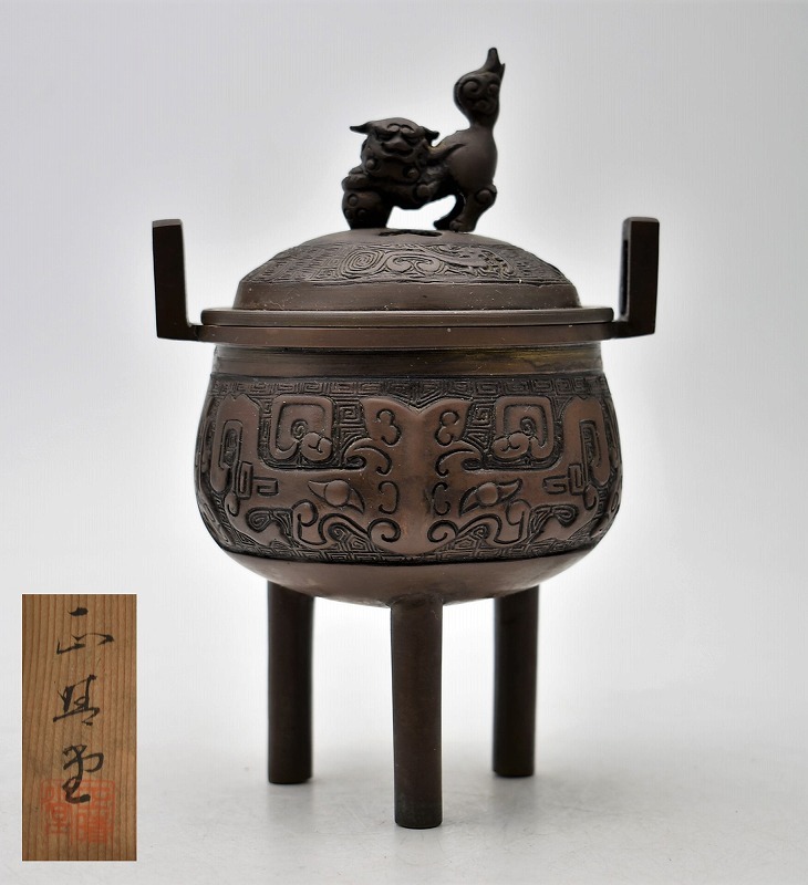 古道具買取 茶道具買取【石川県金沢市】のお客様より◆高岡銅器 正晴堂 饕餮文 高足 獅子香炉◆をお買取り。