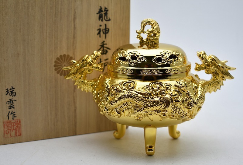 古道具買取 茶道具買取 骨董品買取【富山県南砺市】のお客様より◆高岡銅器 金鍍金 瑞雲作 龍神香炉◆をお買取り。