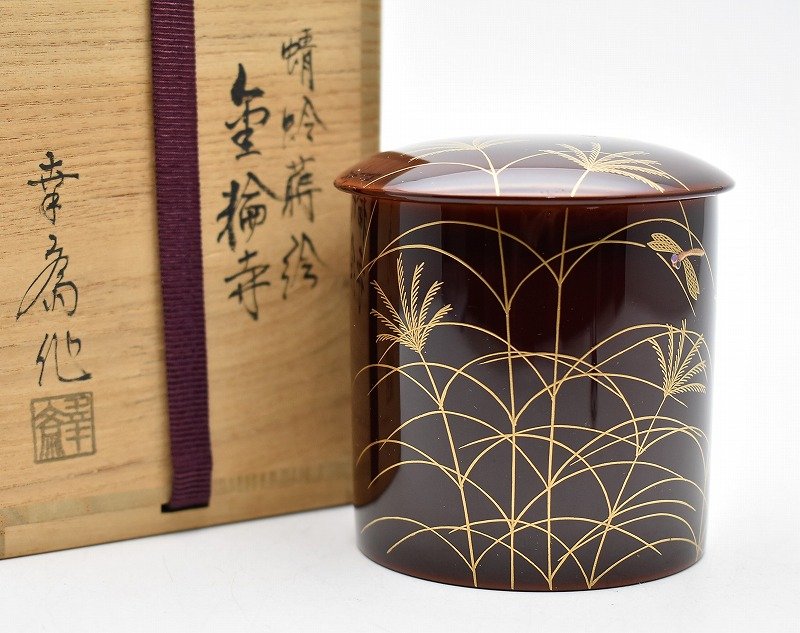 石川県金沢市のお客様に出張買取にてご依頼頂き、加賀蒔絵師 竹内幸斎 溜塗 蜻蛉蒔絵 金輪寺 棗を買取りさせて頂きました。
