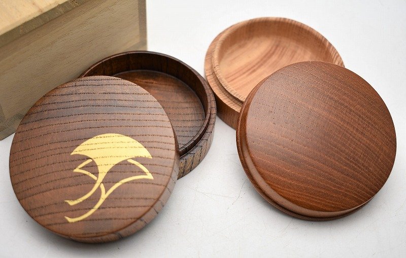 石川県金沢市のお客様に出張買取にてご依頼頂き、香道具 本欅 一文字 拭漆塗 銀杏紋 木曽塗 無地 香合を買取りさせて頂きました。
