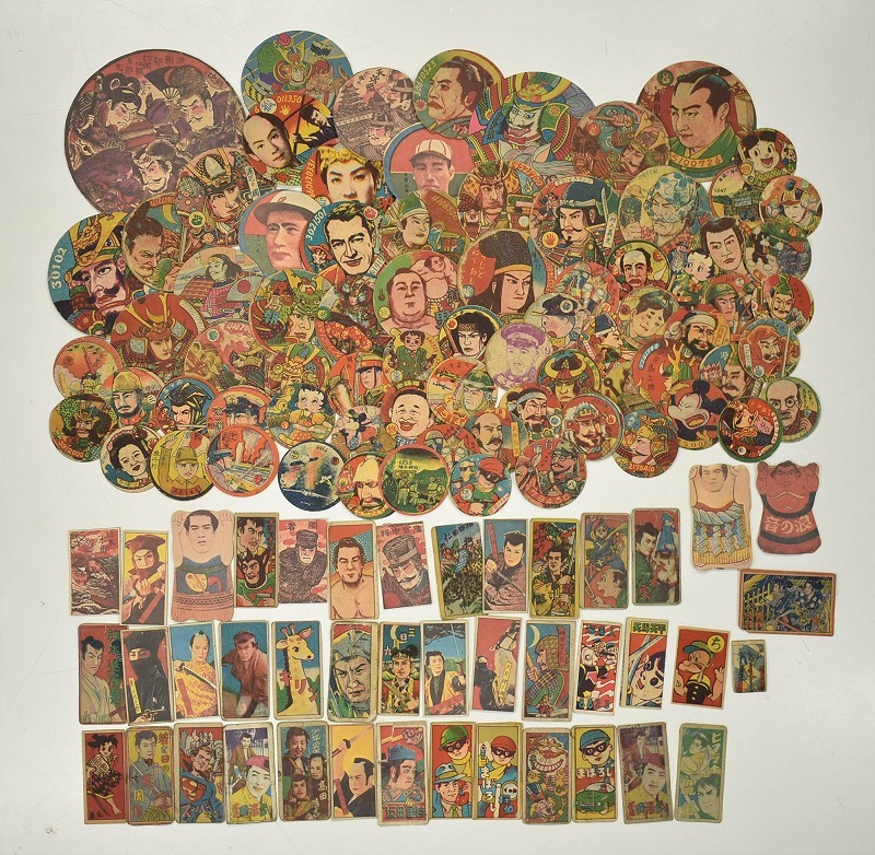 石川県金沢市のお客様より店舗買取にてご来店頂き、当時物 木版画 駄菓子屋玩具 丸面子 めんこ カード 大量 まとめて買取りさせていただきました。