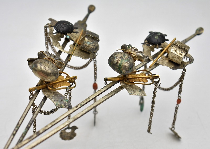 石川県金沢市のお客様より出張買取にてご依頼頂き、和装小物 金属製 簪 びら簪 ビラカン 浦島太郎 亀 玉手箱 宝図を買取りさせていただきました。