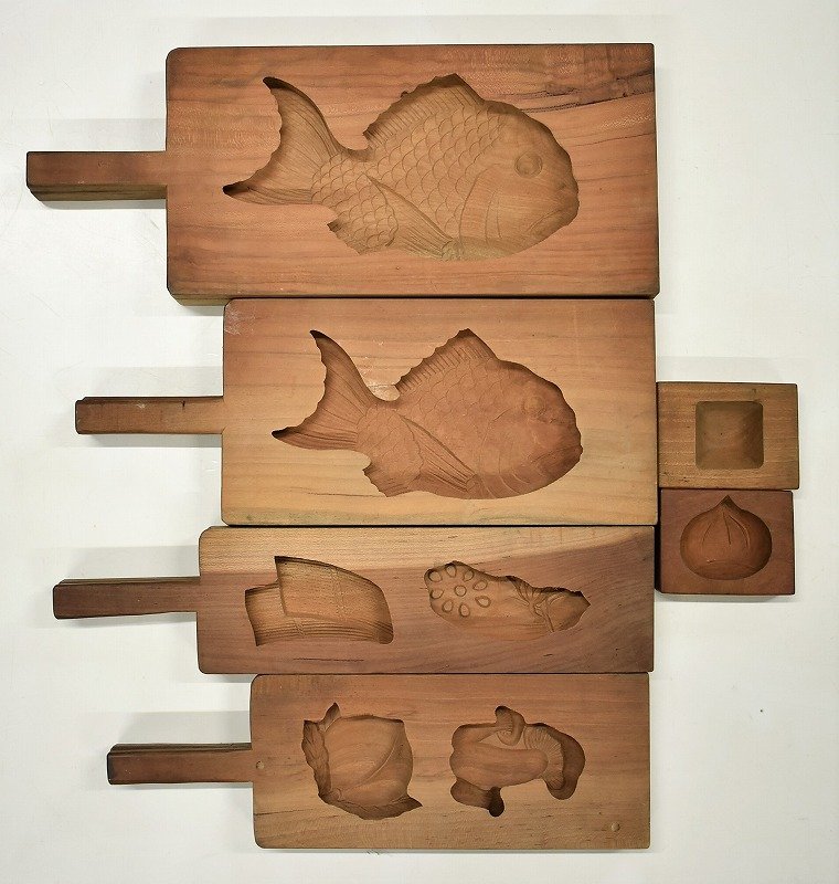 レトロ品買取 古道具買取【福井県坂井市】のお客様より◆木彫 和菓子 落雁 菓子型 木型 羽子板 鯛 桃 茸 栗 など◆をお買取り。