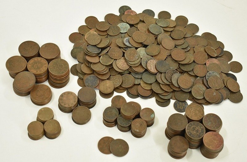 福井県福井市のお客様に出張買取にてご依頼頂き、日本古銭 竜 龍 旭日銅銭 硬貨 大量 まとめてを買取りさせて頂きました。
