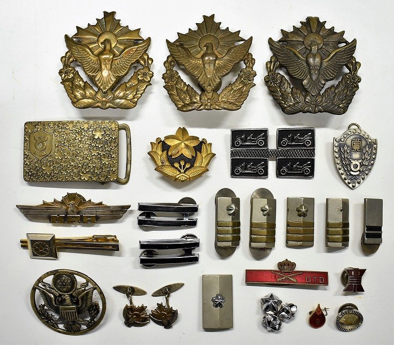 石川県金沢市のお客様に出張買取にてご依頼頂き、当時物 自衛隊 アメリカ空軍など 帽章 ベルトバックル 部隊章 階級章 徽章いろいろを買取りさせていただきました。