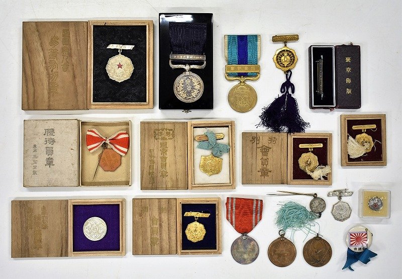 昭和十四年六月三日 褒章 飾版 従軍記章 支那事変 愛国婦人会有功章 奉讃会 など 勲章記章買取 アンティーク買取 古道具買取