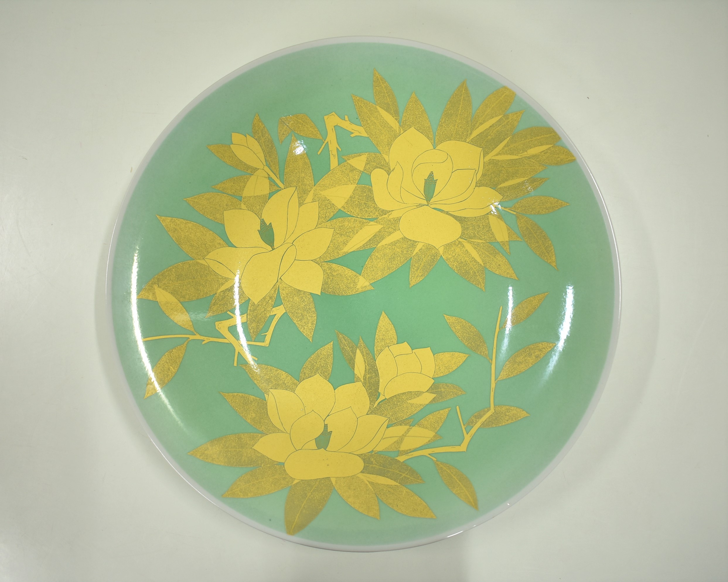 石川県金沢市のお客様に出張買取にてご依頼頂き、九谷焼 人間国宝吉田美統作 釉裏金彩泰山木文 一尺一寸大皿を買取りさせて頂きました。