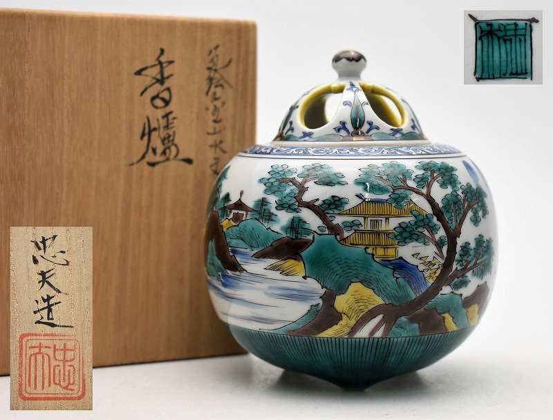 九谷焼買取 骨董品買取【石川県能美市】のお客様より◆九谷焼 名工 宮本忠夫 色絵九谷山水文 香炉◆をお買取り。