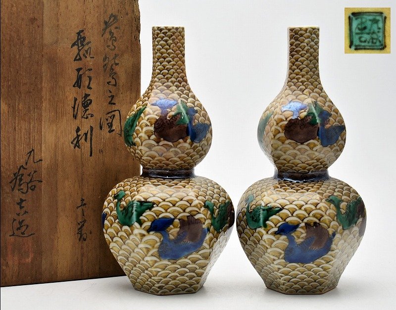 石川県能美市のお客様に店頭買取にてご来店頂き、九谷焼 三ツ井為吉 鴛鴦之図 捻瓢形 徳利を買取りさせて頂きました。