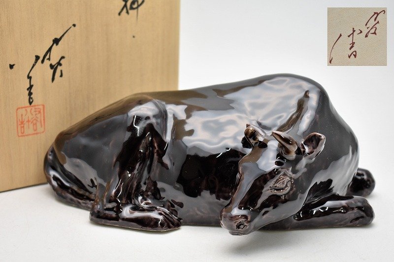九谷焼買取【石川県金沢市】のお客様より◆人間国宝 九谷焼 三代 徳田八十吉 丑 牛 干支 置物◆をお買取り。