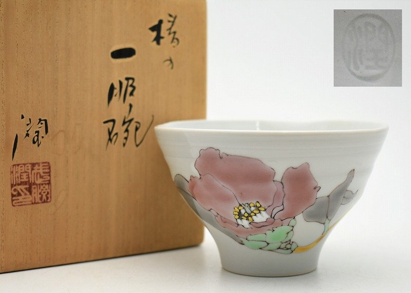 九谷焼買取 茶道具買取【福井県福井市】のお客様より◆石川県指定無形文化財 九谷焼 泰山四代目 武腰潤 椿の一服碗◆をお買取り。
