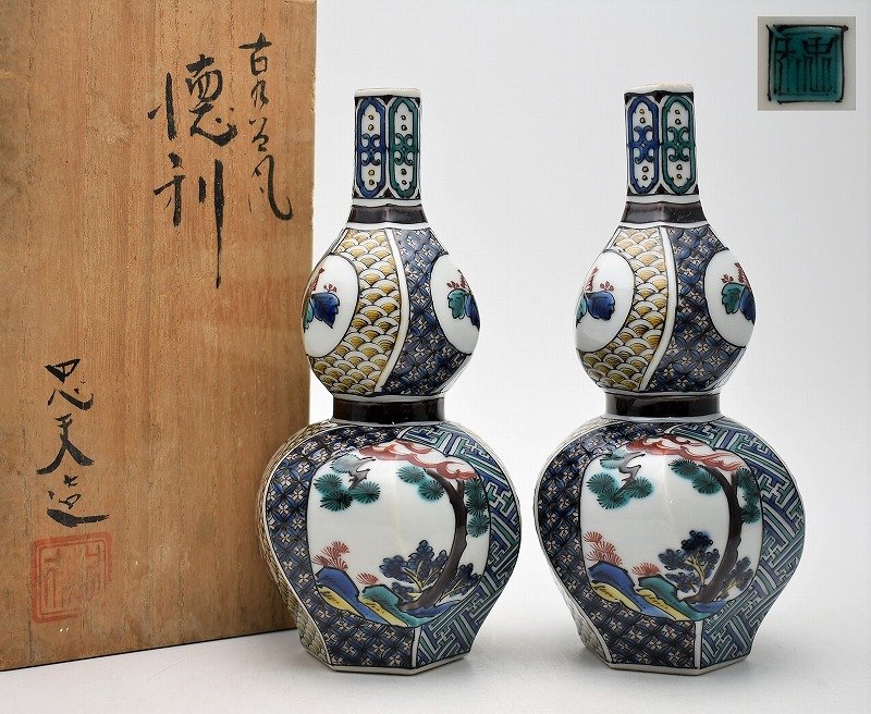 石川県能美市のお客様に出張買取にてご依頼頂き、九谷焼 名工 宮本忠夫 色絵松竹梅 捻瓢形 徳利 酒器 一対を買取りさせて頂きました。