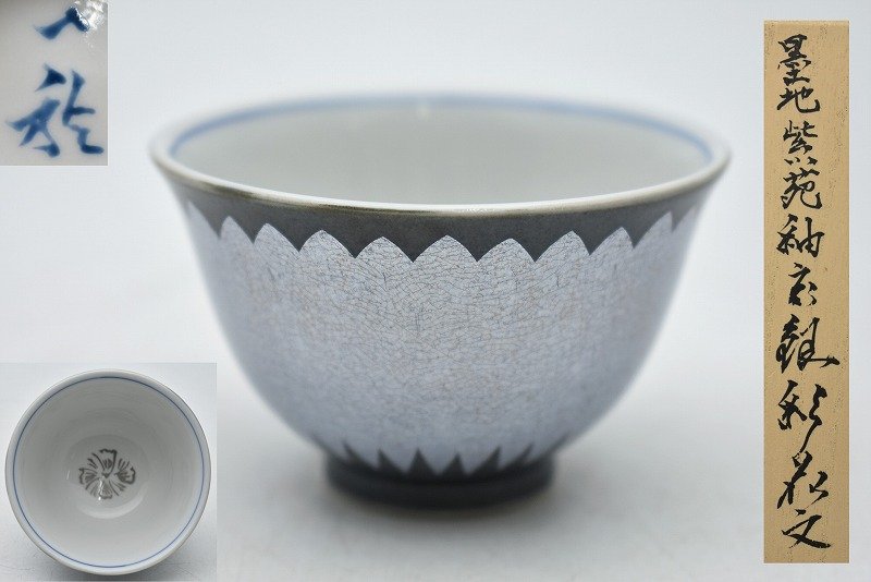 石川県小松市のお客様に出張買取にてご依頼頂き、九谷焼 名工 中田一於 墨地紫苑釉裏銀彩花文 ぐい呑 酒器 酒盃を買取りさせて頂きました。