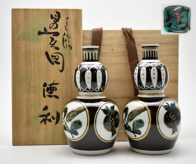 九谷焼買取 古美術買取【石川県能美市】のお客様より◆人間国宝 九谷焼 徳田正彦 三代徳田八十吉 古九谷意 絵変酒器◆をお買取り。