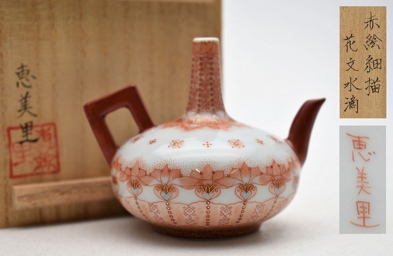 九谷焼買取 骨董品買取【石川県金沢市】のお客様より◆九谷焼 現代作家 織田恵美 恵美里 赤絵細描 花文水滴◆をお買取り