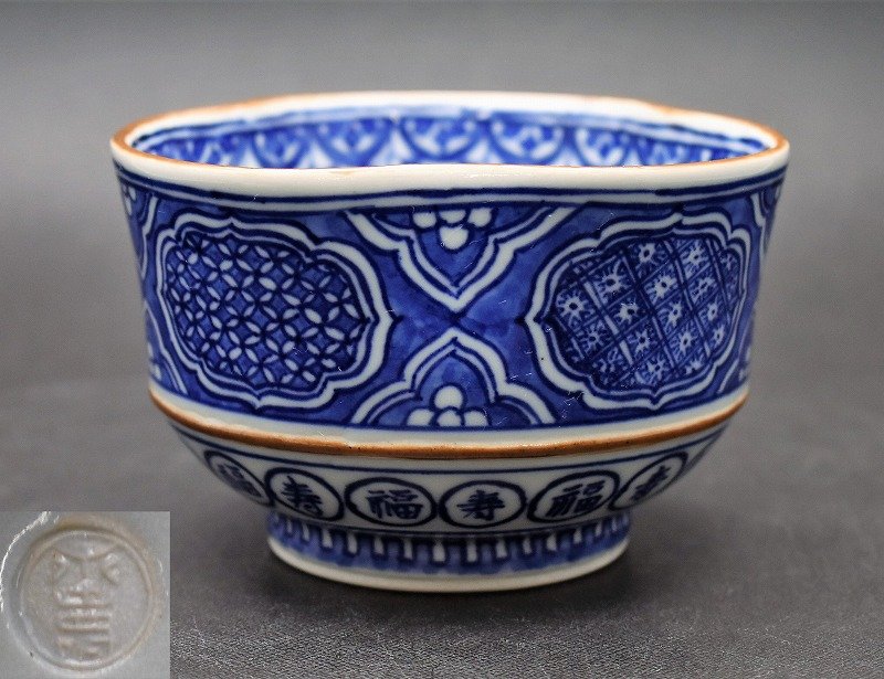 九谷焼買取 古美術買取【石川県能美市】のお客様より◆九谷焼 矢口永寿 染付瑞祥 福寿 茶碗◆をお買取り。