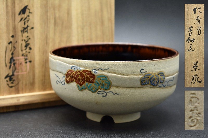 九谷焼買取 古美術買取【石川県能美市】のお客様より◆九谷焼 味渓窯 矢口永寿 仁清写 蔓桐文 茶碗◆をお買取り。