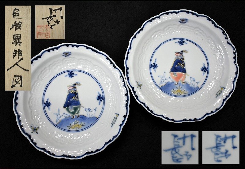 石川県能美市のお客様に出張買取にてご依頼頂き、九谷焼 妙泉陶房 山本長左 色絵異邦人図 浅鉢 一対を買取りさせて頂きました。