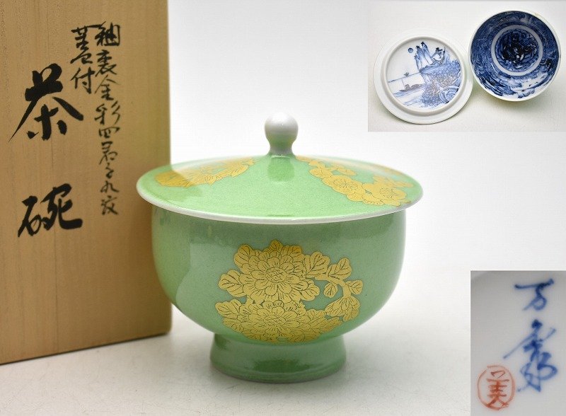 石川県小松市のお客様に出張買取にてご依頼頂き、人間国宝 九谷焼 万象窯 吉田美統 釉裏金彩四君子丸紋 蓋付 茶碗を買取りさせて頂きました。