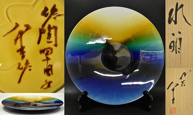 石川県小松市のお客様に出張買取にてご依頼頂き、最上位作 人間国宝 九谷焼 三代 徳田八十吉 耀彩鉢 れい明 黎明 49.5cm 大皿を買取りさせて頂きました。
