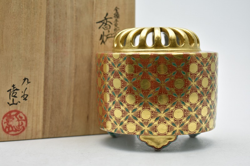 九谷焼買取 茶道具買取【石川県小松市】のお客様より◆九谷焼 名工 四代上出喜山作 五彩小紋文様香炉◆をお買取り。