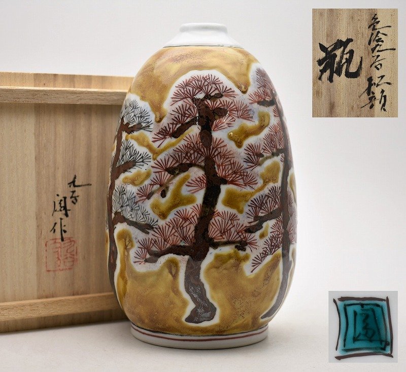 石川県金沢市のお客様に出張買取にてご依頼頂き、 九谷焼 伝統工芸士 美山富 美山陶窯 色絵九谷松韻 瓶を買取りさせていただきました。