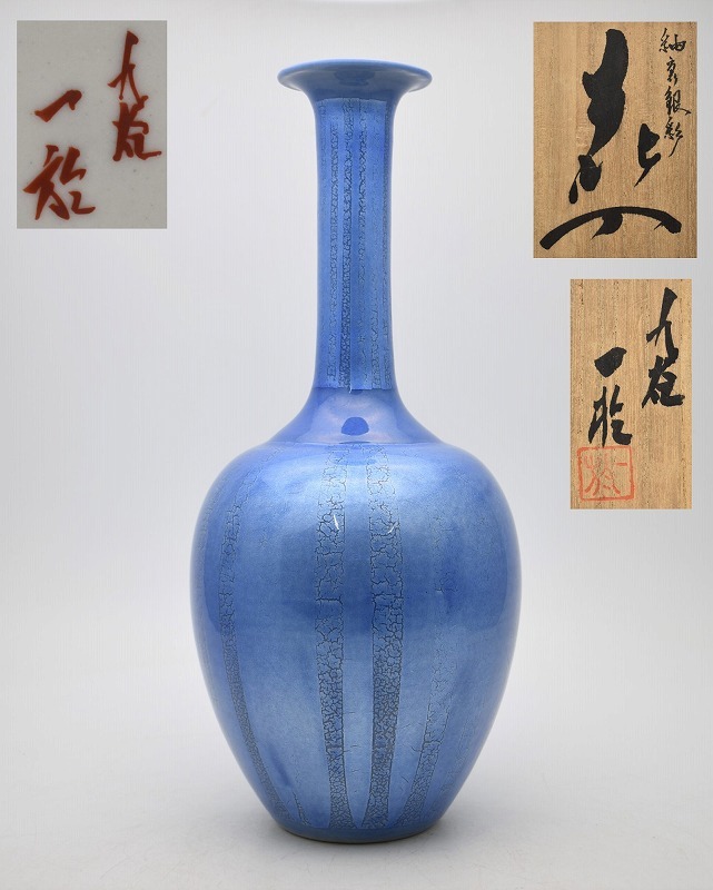 九谷焼買取 骨董品買取【石川県羽咋市】のお客様より◆九谷焼 錦苑窯 中田一於 釉裏銀彩 花入◆をお買取り。