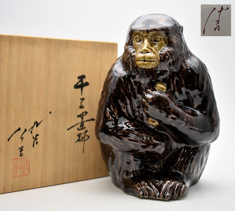 石川県野々市市のお客様に店頭買取にてご来店頂き、人間国宝 九谷焼 三代 徳田八十吉 申 猿 干支置物を買取りさせていただきました。