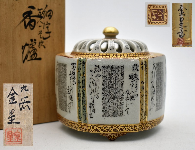 九谷焼買取 茶道具買取【石川県白山市】のお客様より◆九谷焼 細字師 田村金星 花押 細字百人一首歌 香炉◆をお買取り。