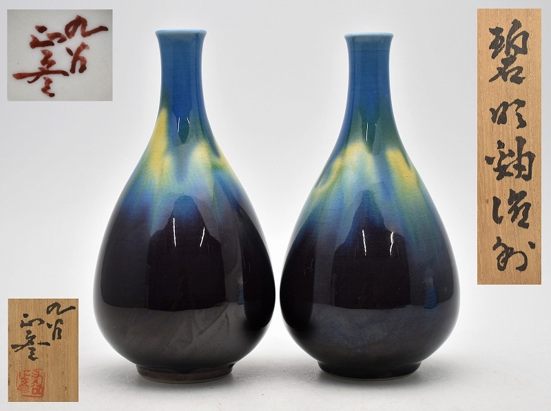 九谷焼買取 骨董品買取【石川県小松市】のお客様より◆人間国宝 九谷焼 徳田正彦 三代 徳田八十吉 碧明釉 徳利◆をお買取り。