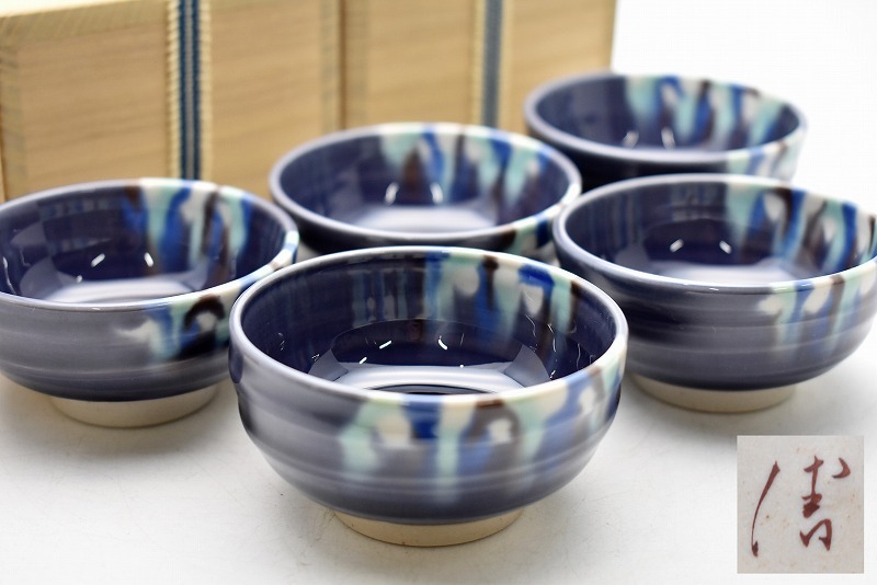 未使用品5客 共箱あり。酒器 酒盃 九谷焼買取