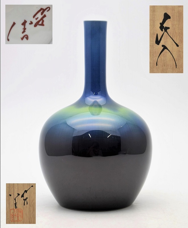 九谷焼買取 古美術買取【石川県能美市】のお客様より◆人間国宝 九谷焼 三代 徳田八十吉 彩釉 花入◆をお買取り。