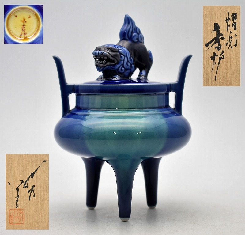 九谷焼買取 古美術買取【石川県能美市】のお客様より◆人間国宝 九谷焼 三代 徳田八十吉 燿彩 獅子 香炉◆をお買取り。