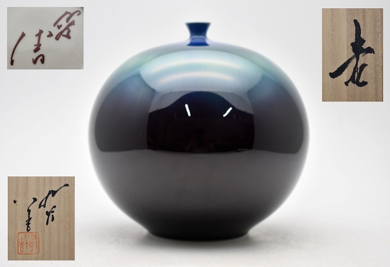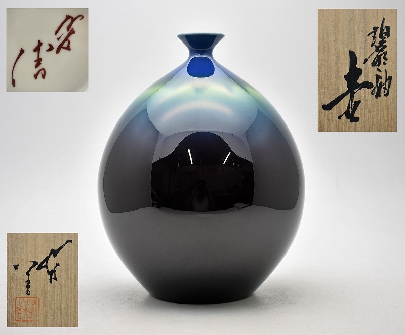 九谷焼買取 古美術買取【石川県加賀市】のお客様より◆人間国宝 九谷焼 三代 徳田八十吉 碧明釉 壷◆をお買取り。