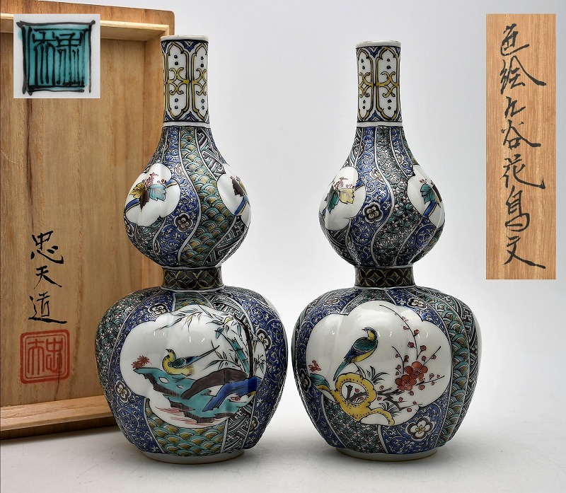 九谷焼買取 古美術買取【石川県能美市】のお客様より◆九谷焼 宮本忠夫 色絵九谷花鳥文 捻瓢形 徳利◆をお買取り。