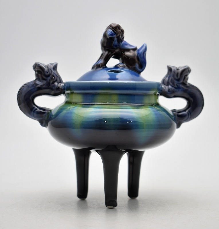 九谷焼買取 古美術買取 茶道具買取【石川県小松市】のお客様より◆人間国宝 九谷焼 徳田正彦 三代 徳田八十吉 碧明釉 獅子香炉◆をお買取り。