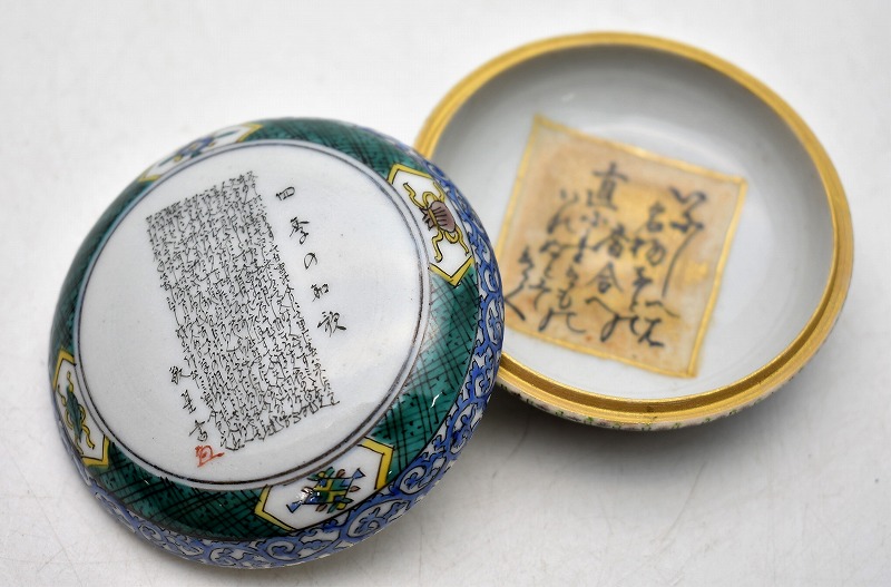 九谷焼買取 茶道具買取 骨董品買取【石川県小松市】のお客様より◆九谷焼 三代 田村敬星 花押 毛筆細字 四季彩色文 香合◆をお買取り。
