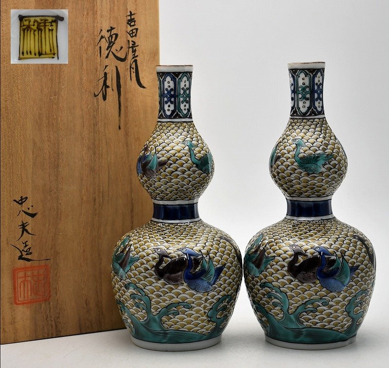 石川県金沢市のお客様に出張買取にてご依頼頂き、九谷焼 名工 宮本忠夫 吉田屋風 瓢形 徳利 酒器 銚子 一対を買取りさせて頂きました。