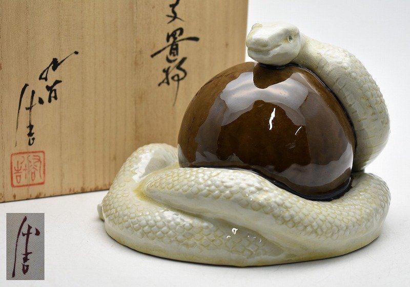 九谷焼買取石川県小松市◆人間国宝 九谷焼 三代 徳田八十吉 干支置物 蛇 巳◆をお買取り。