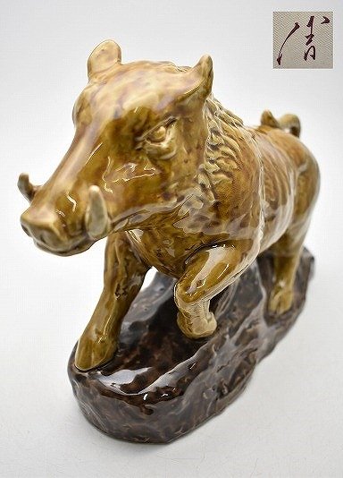 九谷焼買取石川県小松市◆人間国宝 九谷焼 三代 徳田八十吉 干支置物 猪 亥◆をお買取り。