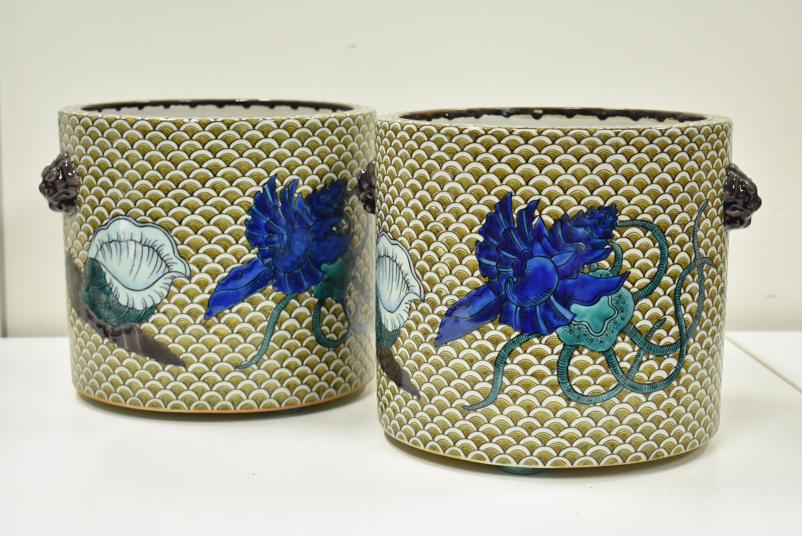 九谷焼買取 骨董品買取石川県加賀市◆九谷焼 名工 初代徳田八十吉造 青海波 貝の図 手焙◆をお買取り。