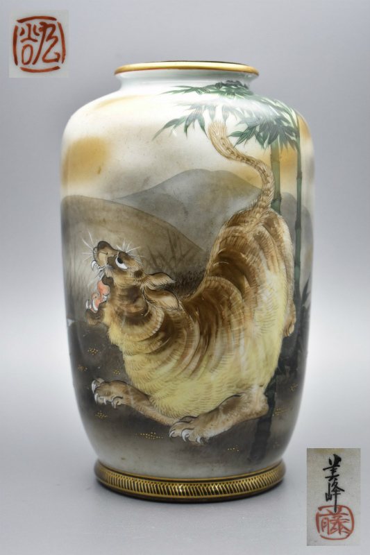 石川県小松市のお客様より出張買取にてご依頼頂き、時代 明治期 九谷焼 美峰 鷹虎図 花器を買取りさせていただきました