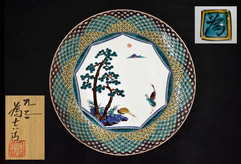 九谷焼・輪島塗 九谷焼買取 古美術買取 古道具・骨董・古美術 骨董品買取【石川県かほく市】のお客様より◆九谷焼 三代 為吉 三ツ井詠一 色絵松に鶴 飾皿◆をお買取り。