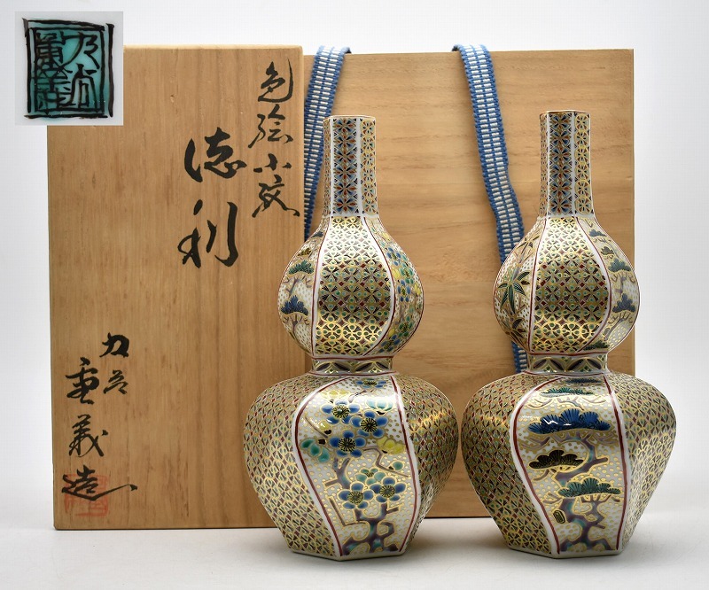 石川県小松市のお客様より出張買取にてご依頼頂き、九谷焼 山本重義 金襴手 色絵松竹梅小紋 捻瓢形 徳利 酒器 一対を買取りさせていただきました。