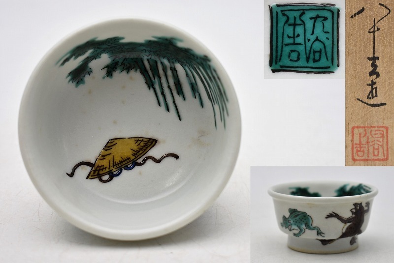 九谷焼・輪島塗 九谷焼買取 古道具・骨董・古美術 茶道具【石川県小松市】のお客様より◆無形文化財 九谷焼 初代 徳田八十吉 蛙編笠図 酒盃◆をお買取り。
