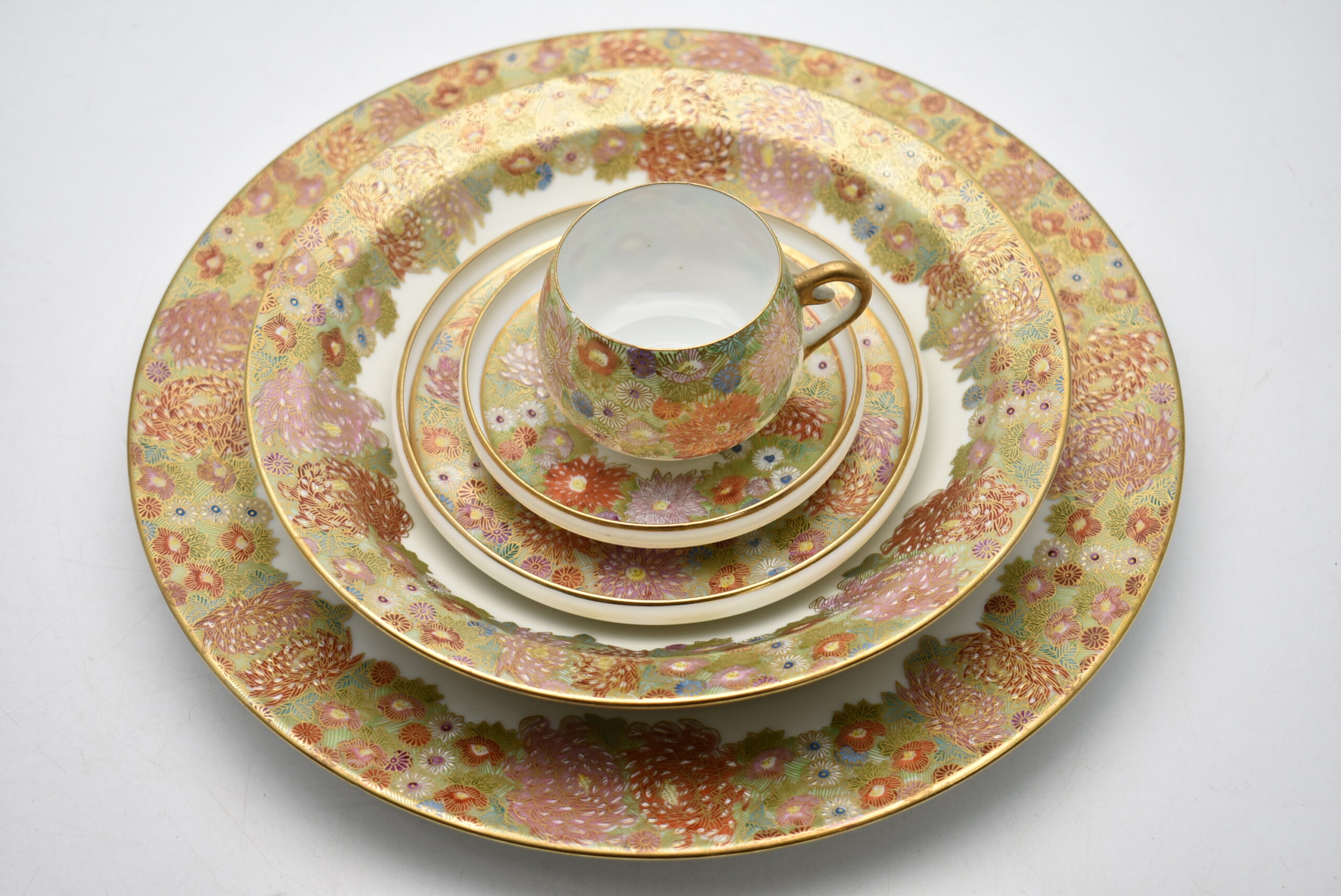 今回は福井県あわら市のお客様よりご自宅の蔵の整理のご依頼を頂き、九谷焼の海外輸出用に作られた花詰め紋様のカップ&ソーサーとプレート一式。その他にも輸出用九谷のお品物を大量に買取させていただきました。従来の九谷焼には無い薄くて繊細な出来栄えです。
