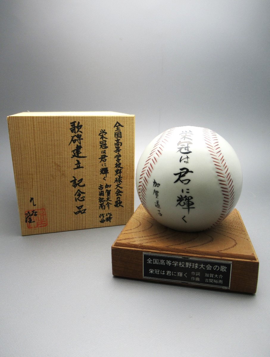 九谷焼買取石川県能美市のお客様より◆珍品 九谷焼 北村隆 全国高等学校野球大会の歌 陶器の野球ボール置物◆をお買取り。